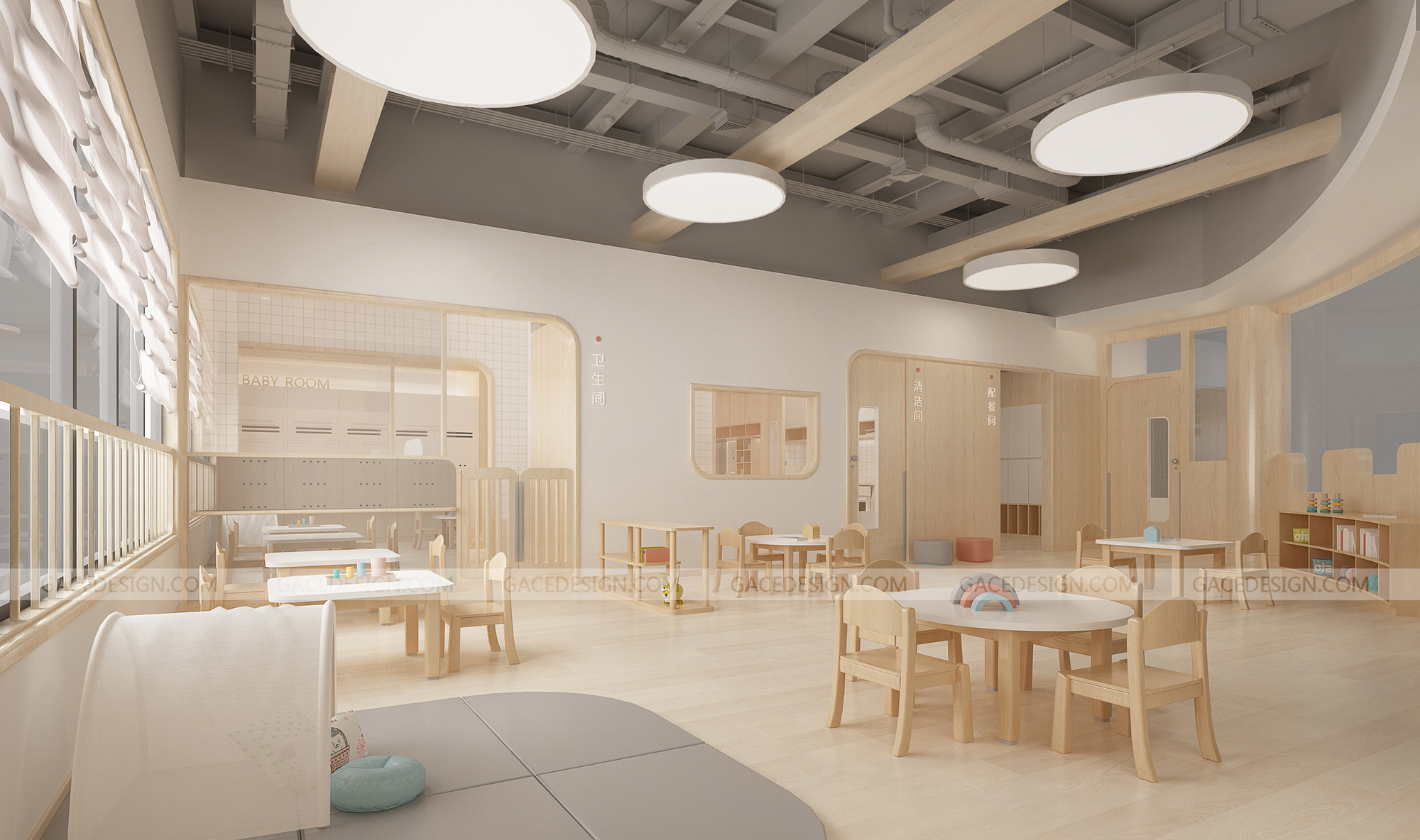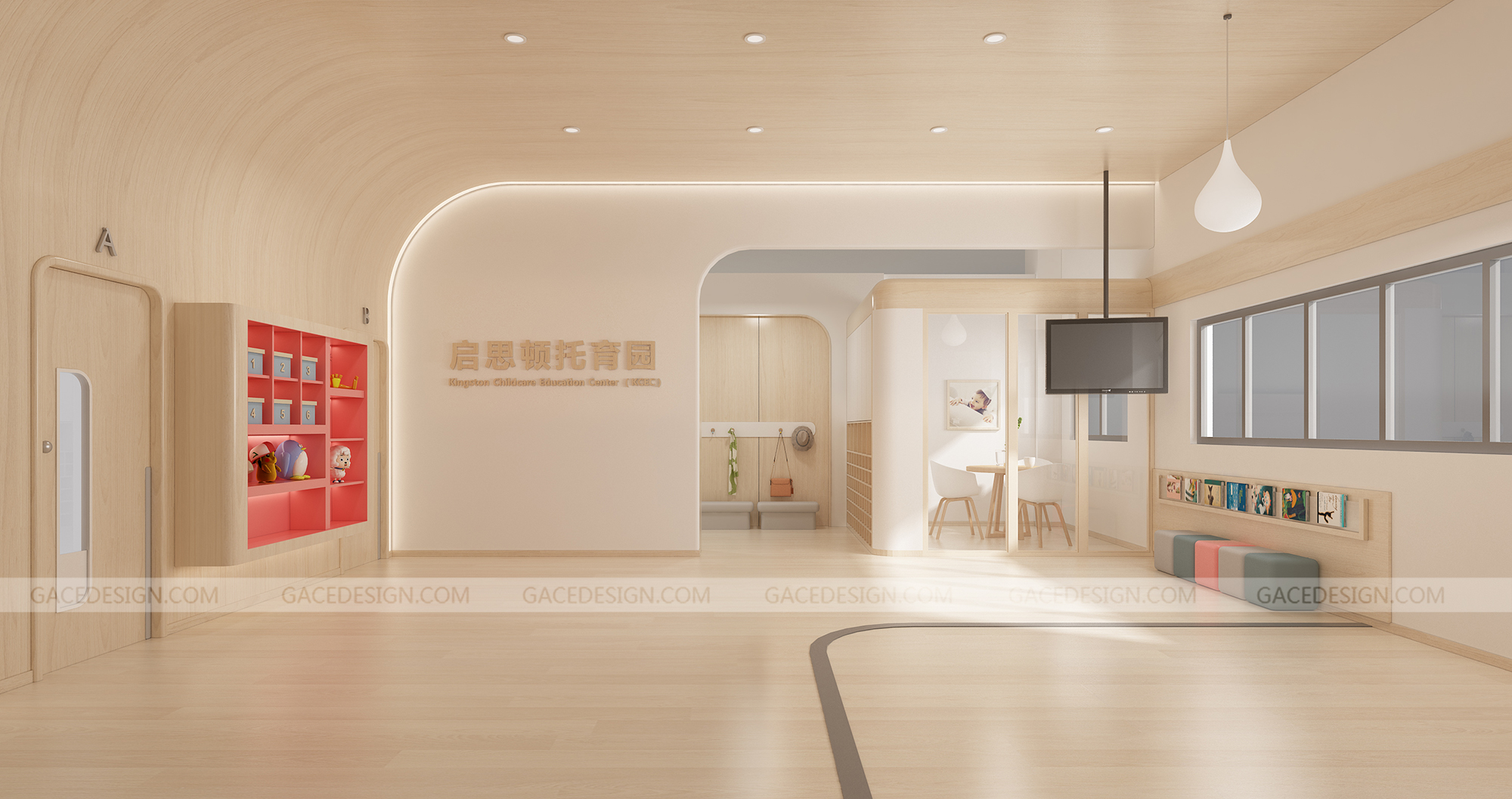 設(shè)計(jì)概括:這是我們幫啟思頓托育園設(shè)計(jì)的旗艦店,面積達(dá)到1000平以上,作為中山市高標(biāo)準(zhǔn)的示范性托育園,我們?cè)谠O(shè)計(jì)之前組織設(shè)計(jì)師進(jìn)行跟崗觀察,學(xué)習(xí)守護(hù)型嬰幼兒保育等系列保育書。考慮到保育員在操作層面上的便捷性,我們進(jìn)行了場(chǎng)景模擬,把操作層面所涉及的柜體以及路徑進(jìn)行了系統(tǒng)性整理。考慮到嬰幼兒在保育園的心理狀態(tài)以及發(fā)展心理學(xué)和空間敏感,我們定位這個(gè)項(xiàng)目是孩子的第二個(gè)家。是一家值得爸爸媽媽愿意托付的托育園。