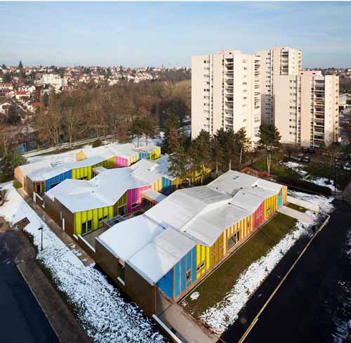 Epinay幼兒園在法國巴黎附近一個名叫埃皮奈蘇塞納爾的小鎮,幼兒園附近坐落的都是上世紀七十年代的經典建筑......