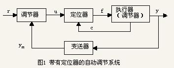 要理解閥門定位器在一個過程控制系統中所扮演的角色,參看圖1。圖中r為被調量的設定值;y為被調量;y為被調量的測量值;u為調節器的輸出信號(與執行器即調節閥的開度成一定的關系);f為定位器的輸出信號;c為閥門位置信號。定位器在此系統中的主要作用就是將從調節器來的調節信號(4~20mA或3~15psi)與從執行器來的閥門位置信號相比較,判斷它們是否與預期的關系相匹配,如果相匹配,則定位器將使執行器維持在此位置,否則將使執行器動作直至兩信號相匹配。此外定位器的主要作用還包括改變閥的作用方式、靜態特性、實現分程控制等。