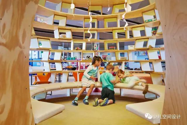 “蜂巢”還提供機(jī)會(huì)或交談空間。里面的座位為孩子們提供了“隱蔽的空間”,可以用來(lái)進(jìn)行討論、玩游戲,或者只是在這里做功課。在“蜂巢”頂部開(kāi)口有個(gè)圓形熒光燈,照明極佳。不同顏色的地毯也為“蜂巢”劃定“特殊”區(qū)域。