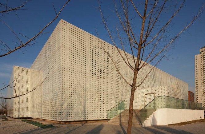 家盒子的外觀,設(shè)計師采用了一個多孔的造型結(jié)構(gòu),為了避免室內(nèi)過熱。同時更傾向于把這個外觀看做一張白紙,利用孔洞大小變化制造出了一系列兒童涂鴉的形狀,并以此來呼應(yīng)主題。使得整個兒童空間的造型設(shè)計非常巧妙、獨特。
