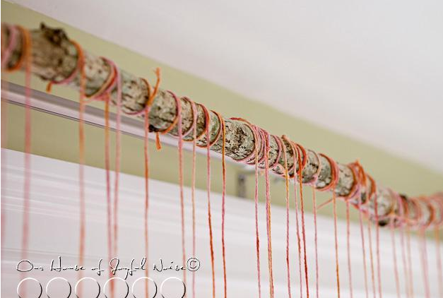 用絲帶將心形圖案串起來,調(diào)整不同的長度,裝飾教室