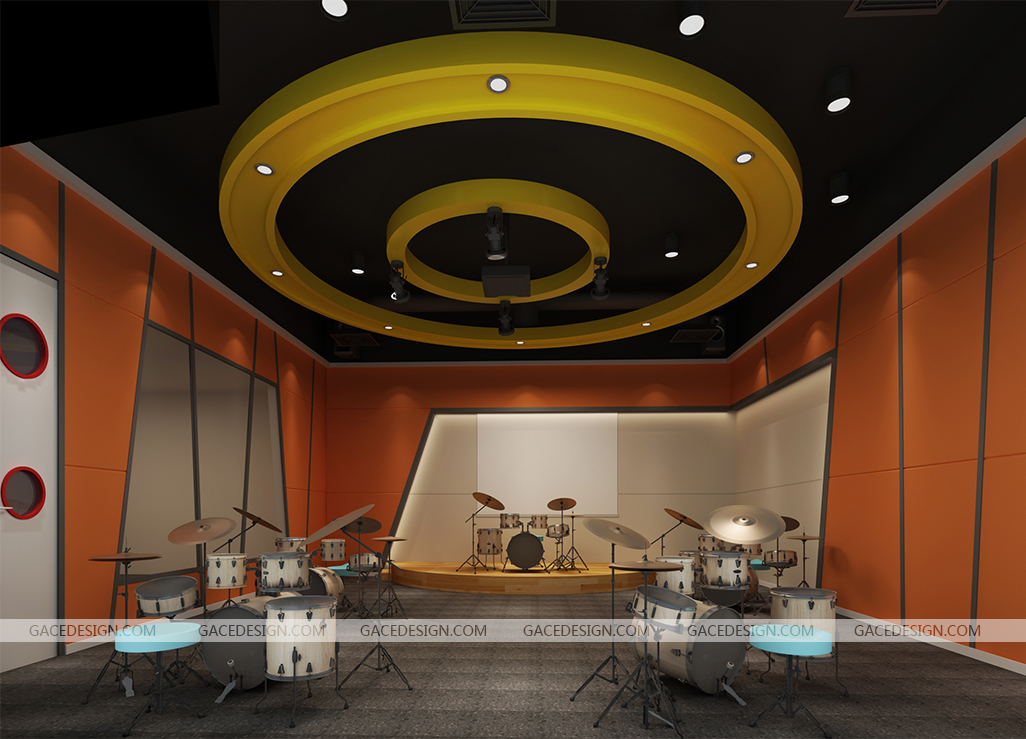 外型上:經過描繪將音體室的功用性非常好的表現出來,以此到達教育性、安全性、開放性的準則。